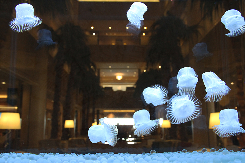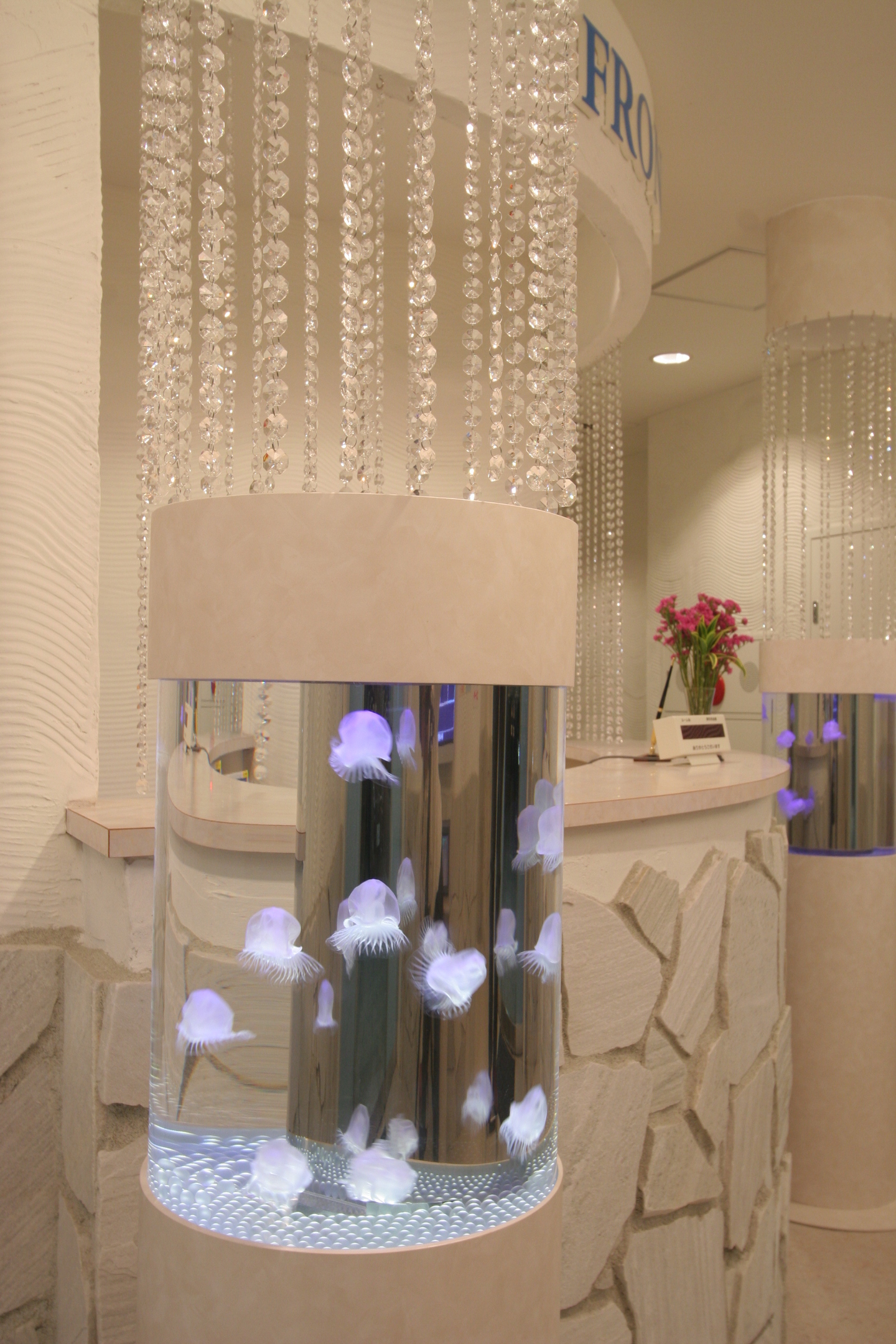 2000年の発表以来、NHK「おはよう日本」や全国紙の1面で紹介。人工筋肉技術を応用した特殊樹脂により、生きたクラゲのような“ゆらぎ”を再現し、安心感や居心地の良さを演出します。設置後は水質管理不要、メンテナンス完全サポートで手間なく運用できます。