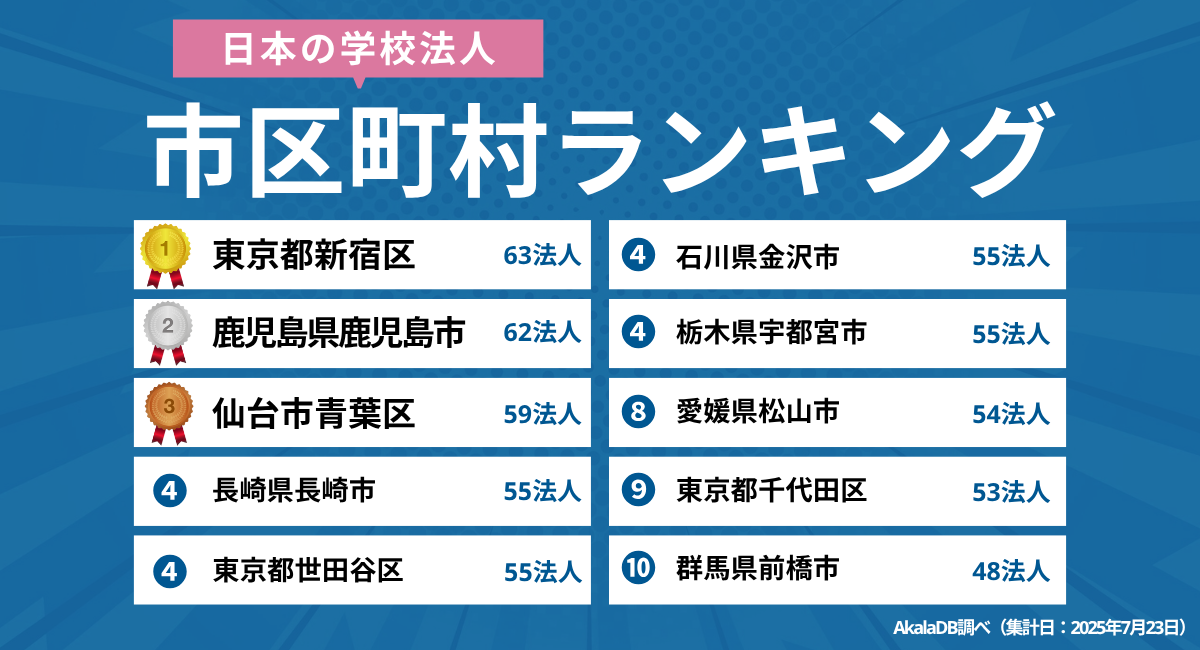 【2025年最新】「学校法人が多い」日本の市区町村ランキング|Akala DB 企業調査レポート