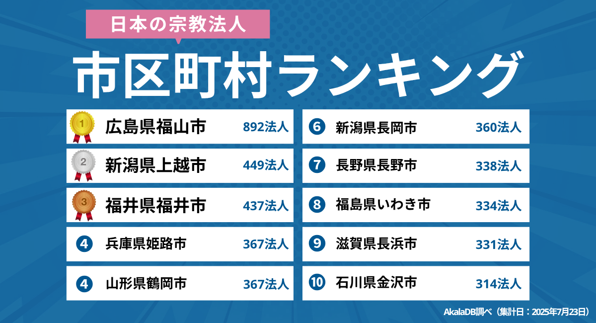 【2025年最新】「宗教法人が多い」日本の市区町村ランキング|Akala DB 企業調査レポート