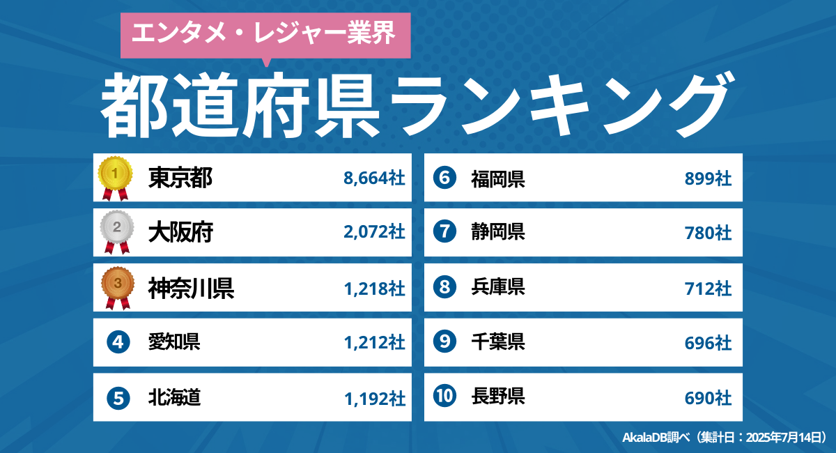 【2025年最新】日本の「エンタメ・レジャー業界」都道府県別企業数ランキング|Akala DB 企業調査レポート
