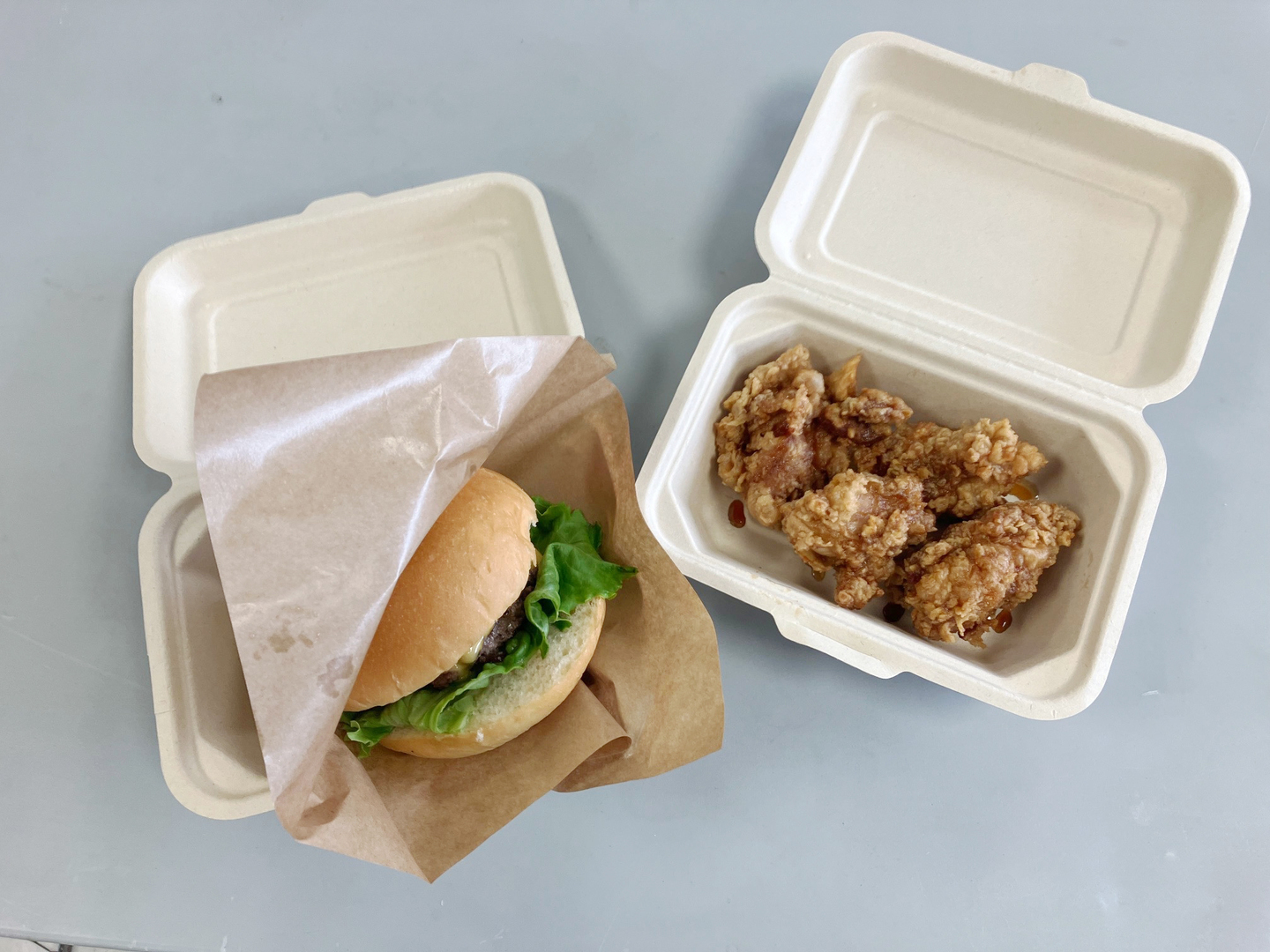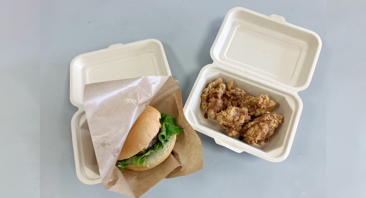 今回、会場では800枚のバガス容器が採用され、会場に出展した4台のキッチンカーにてバガス容器で食事を提供いただきました。使用済み容器は来場者ご協力のもと、会場に設置された専用回収ボックス分別回収を行いました。実際にバガス容器を使用されたキッチンカーの担当者からは、「盛り付けしやすく料理も映える。」と好評をいただきました。