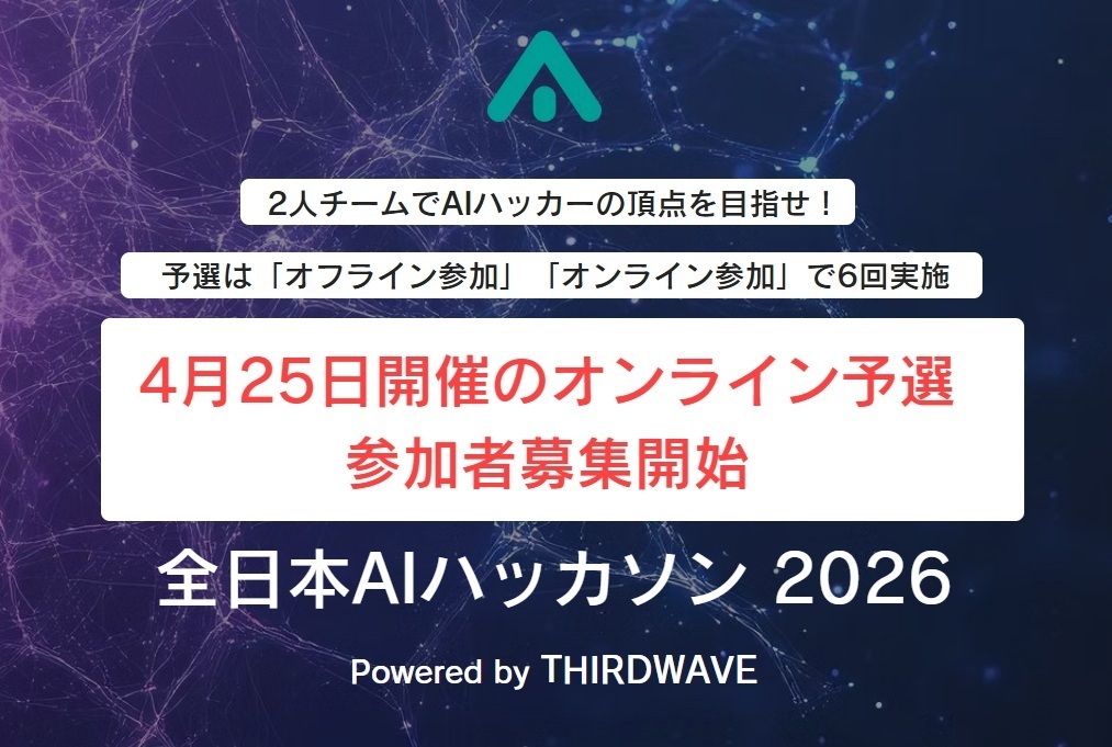 『全日本AIハッカソン 2026 Powered by THIRDWAVE』優勝チームは賞金10万円 初の「オンライン予選」参加者募集開始