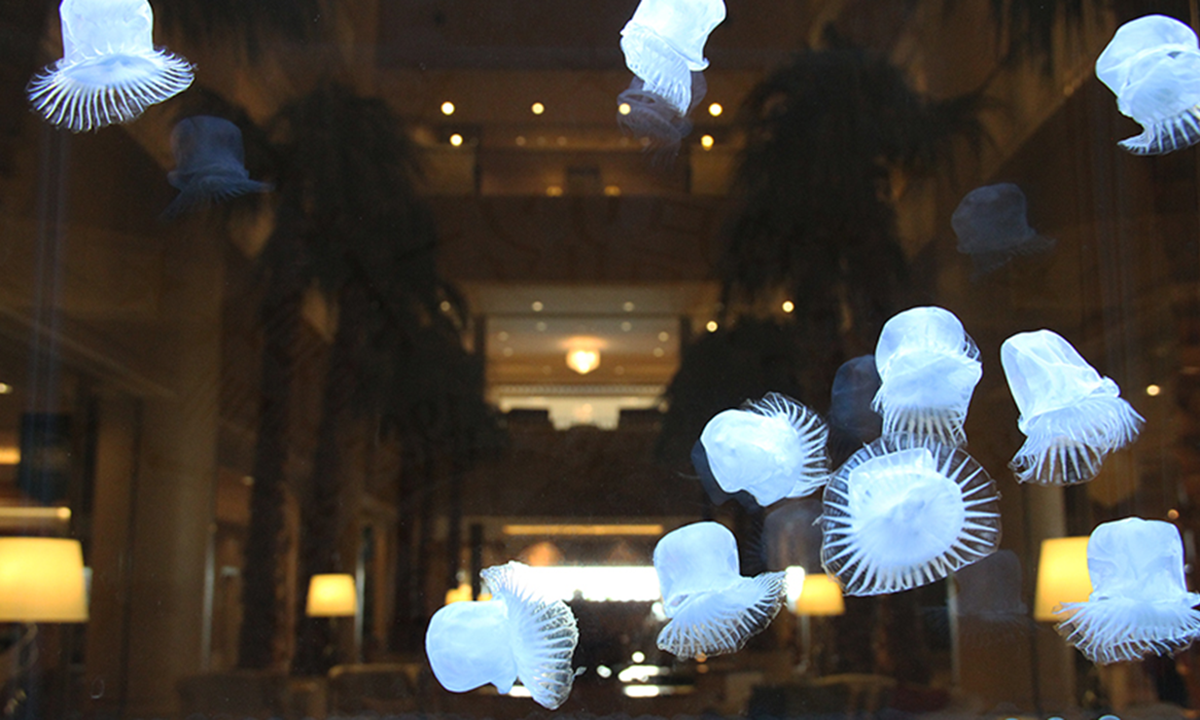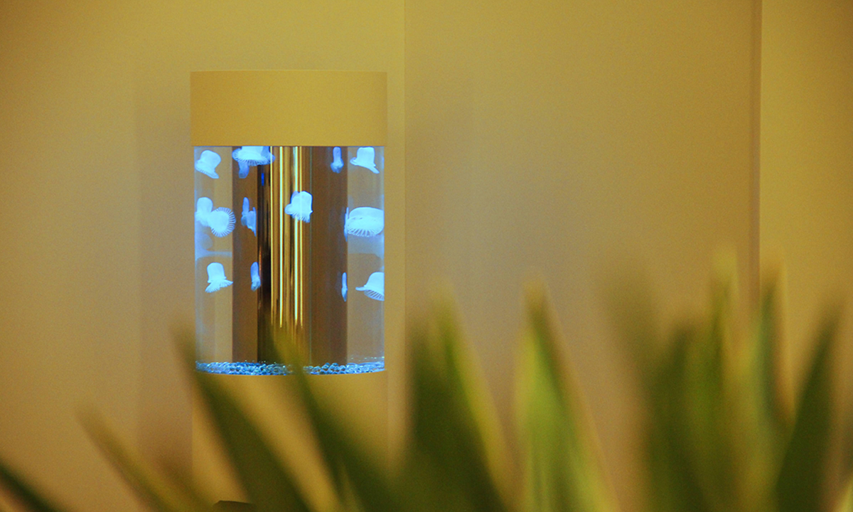 2000年の発表以来、NHK「おはよう日本」や全国紙の1面で紹介。人工筋肉技術を応用した特殊樹脂により、生きたクラゲのような“ゆらぎ”を再現し、安心感や居心地の良さを演出します。設置後は水質管理不要、メンテナンス完全サポートで手間なく運用できます。