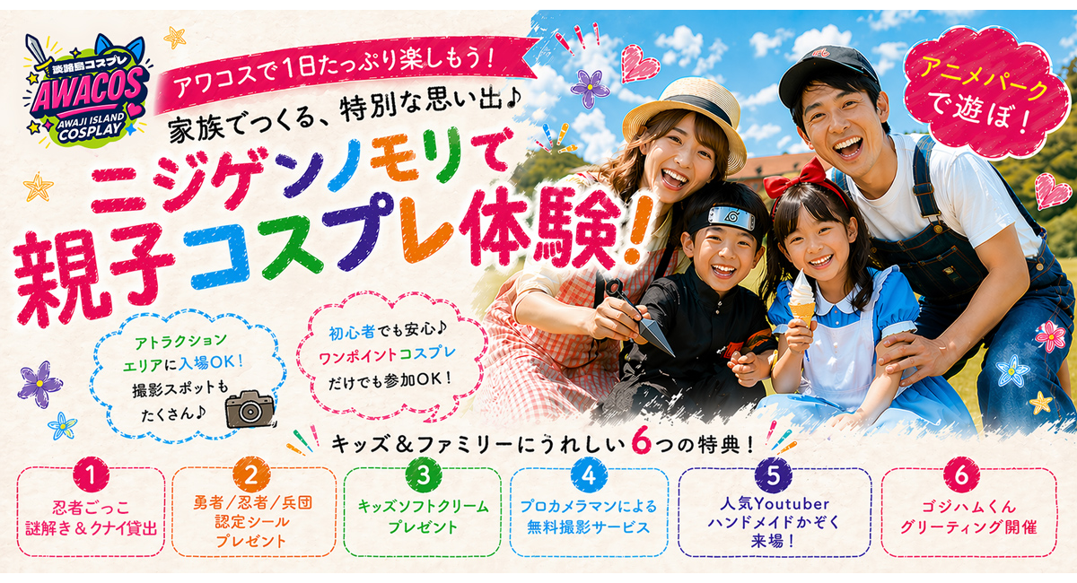 ニジゲンノモリ×世界コスプレサミット『第3回 淡路島COSPLAY〜アワコス〜』ファミリー向け「キッズプログラム」を大幅拡充!