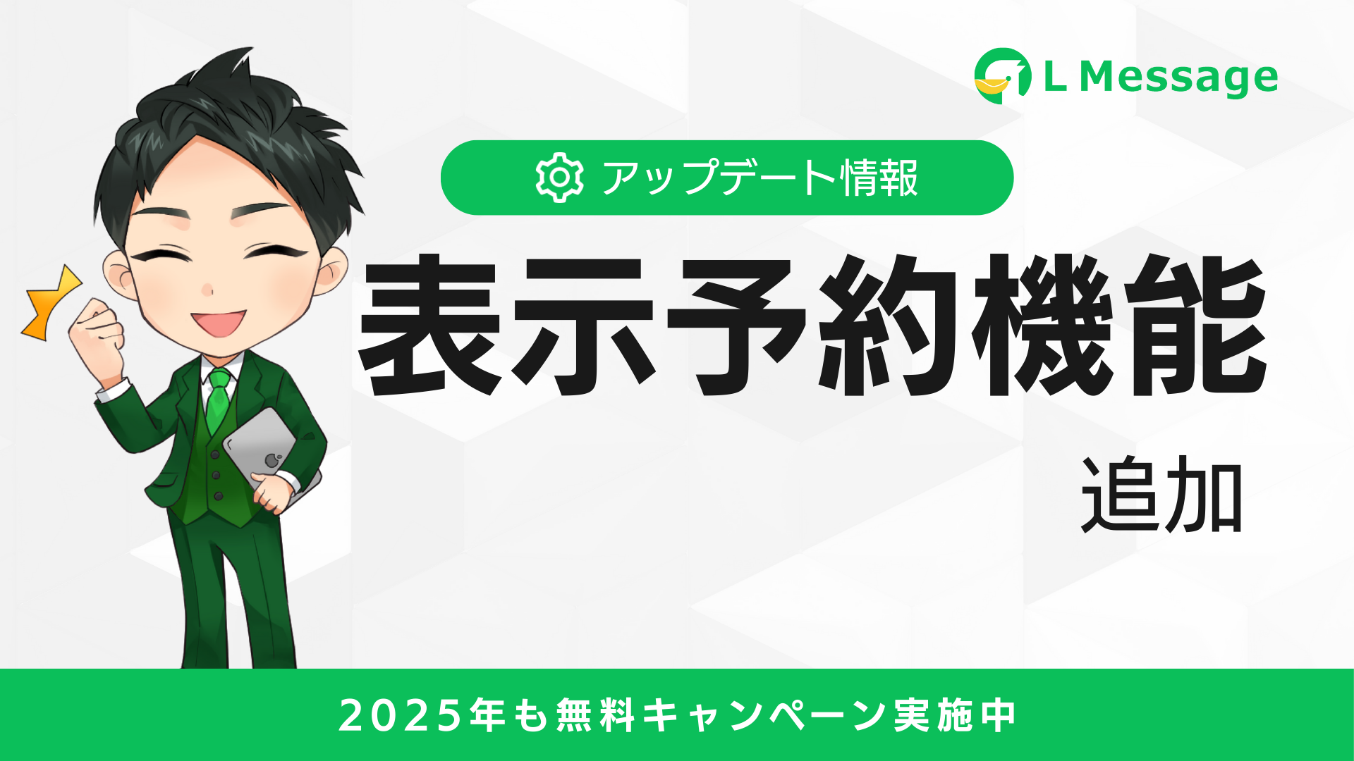 株式会社ミショナはLINE公式アカウント拡張ツール「L Message(エルメッセージ)」のリッチメニューをアップデート。管理画面から表示開始時間が設定可能になり、利便性をさらに高めました。