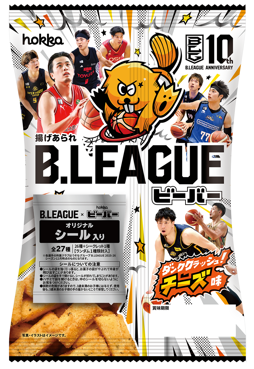 Bリーグ10周年記念コラボ、ついに商品化!「Bリーグビーバー」爆誕!〜ダンククラッシュ!チーズ味〜