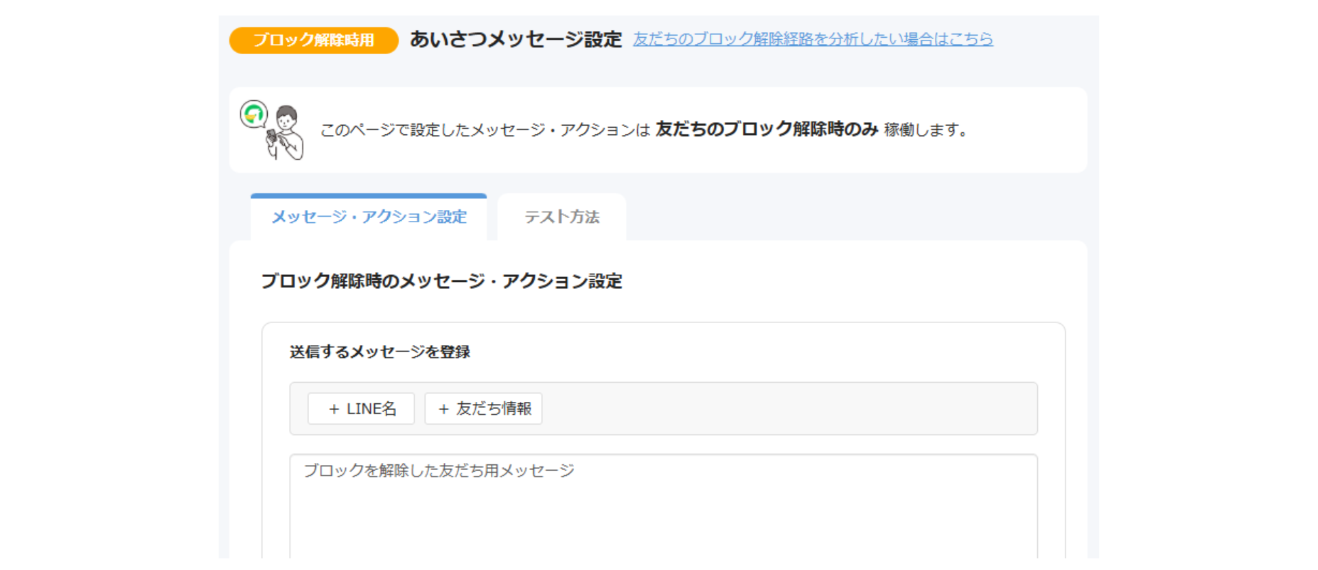 「新規友だち用」「既存友だち用」に加えて「ブロック解除友だち用」アクションが追加されました。